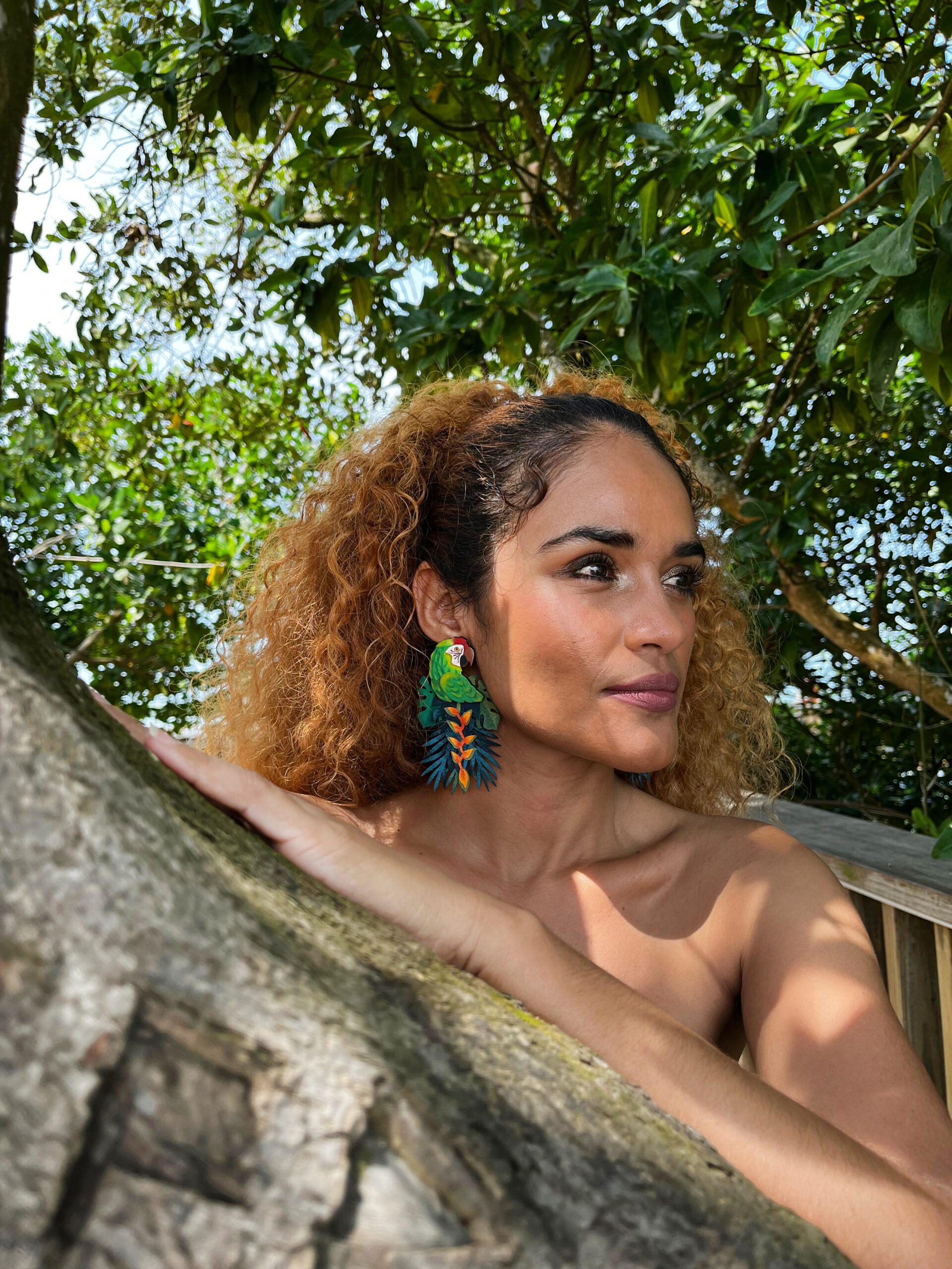 Entre lo más destacado del guacamayo verde es el colorido que se encuentra su frente y mejillas color rojo carmesí, rabadilla y coberteras de la cola color azul turquesa, pico negro mate, iris amarillo y patas y dedos color gris oscuro.